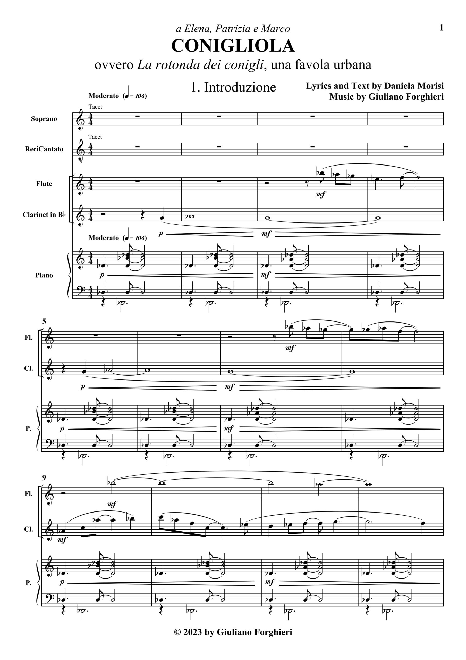 Composizione originale (inedita) per Soprano, Voce recitante, Flauto, Clarinetto in SIb e Pianoforte.